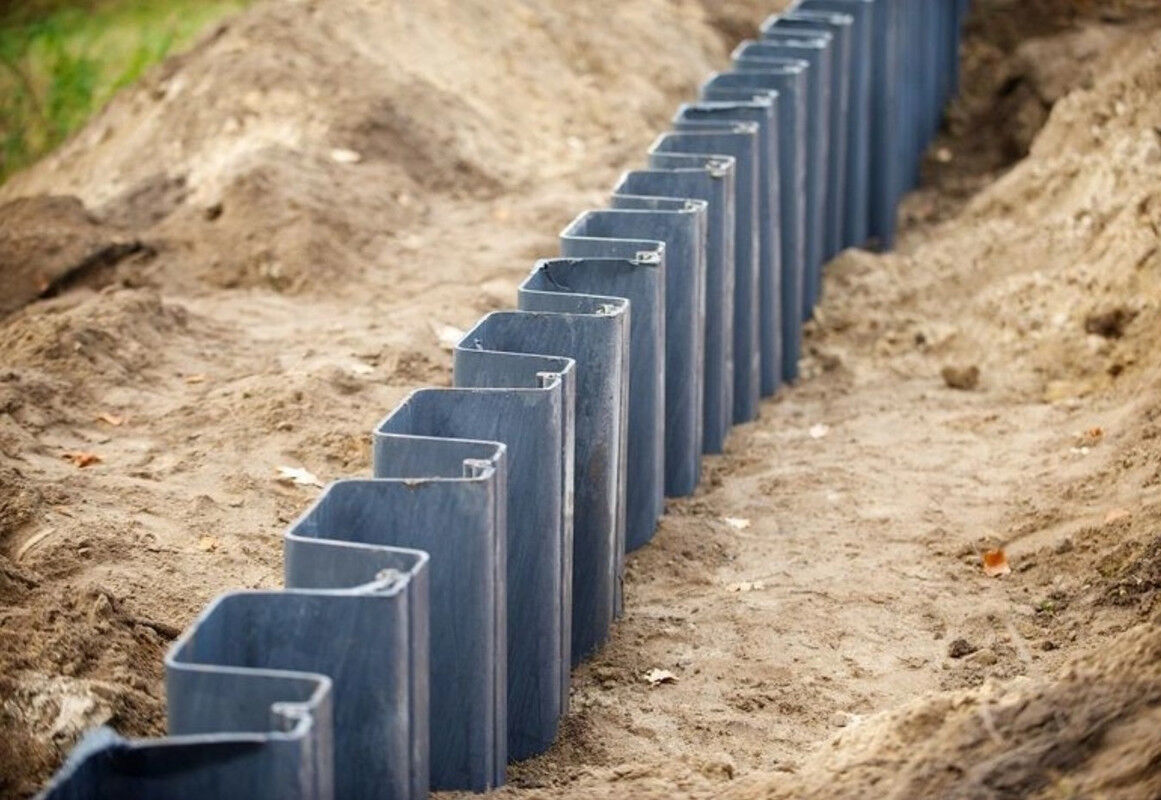 Наиболее распространённый материал. Профили изготавливаются методом горячей прокатки (например, серия Larsen U) или холодной гибки листовой стали с антикоррозийным покрытием. Применяются марки стали S355, S430, с толщиной стенки от 8 до 16 мм. Ресурс — до 50 лет при правильном монтаже и катодной защите; - ПВХ и полимерные композиты: